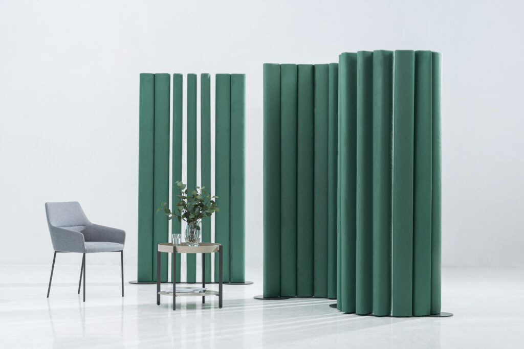 Tapicerowane segmenty można dowolnie konfigurować, tworząc lekkie, estetyczne przegrody dopasowane do potrzeb użytkowników. Dzięki stabilnej podstawie i materiałom tłumiącym dźwięk AcuStixx sprawdza się zarówno w open space’ach, jak i strefach spotkań czy recepcji.