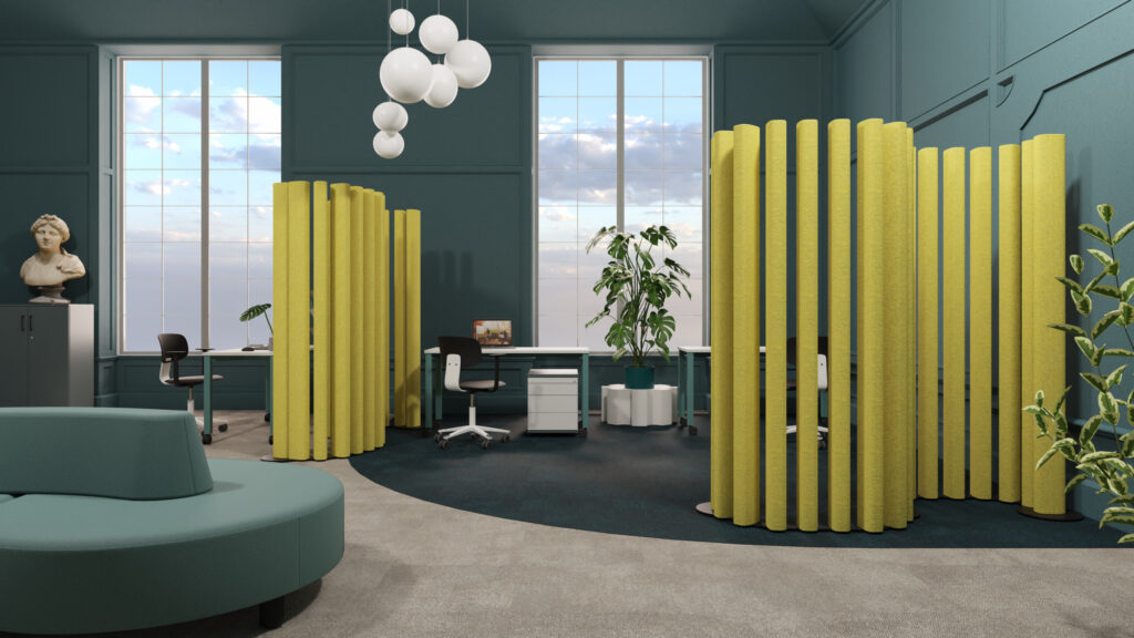 AcuStixx to modułowe, wolnostojące panele akustyczne, które pozwalają w prosty sposób podzielić przestrzeń i poprawić komfort akustyczny w biurze.