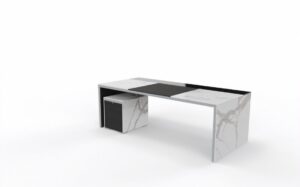 Ekskluzywne materiały takie jak kamień polerowany, fornir czy skóra nadają meblom z kolekcji Ario ton wyjątkowej elegancji. Kolekcja oferuje nie tylko proste biurka gabinetowe o stałej wysokości, ale również biurka z modułem konferencyjnym czy wsparte na szafce. Modele biurek z elektryczną regulacją wysokości blatu to gwarancja komfortu pracy i wydajności. W kolekcji Ario wyjątkowy efekt kolorystyczny można uzyskać zestawiając odpowiednie kolory i dekory – inne dla zewnętrznej i wewnętrznej strony mebla. Blaty biurek zdobią wstawki szklane lub skórzane. Dodatkowy akcent stanowi listwa dekoracyjna wykańczająca obrzeże blatu i nóg.