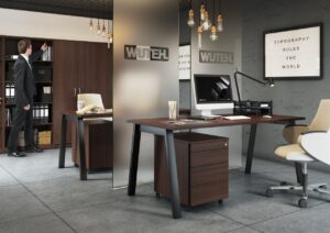 Biurka AVO rzeczywiście nawiązują do klasycznych wzorców mebli szkieletowych z połowy XX wieku, łącząc elegancję i funkcjonalność.