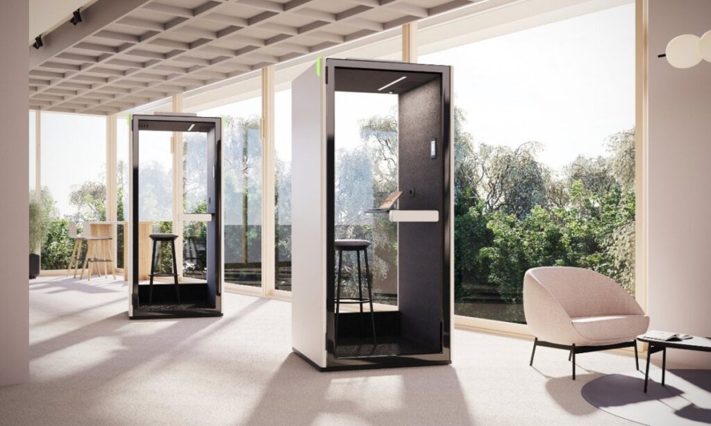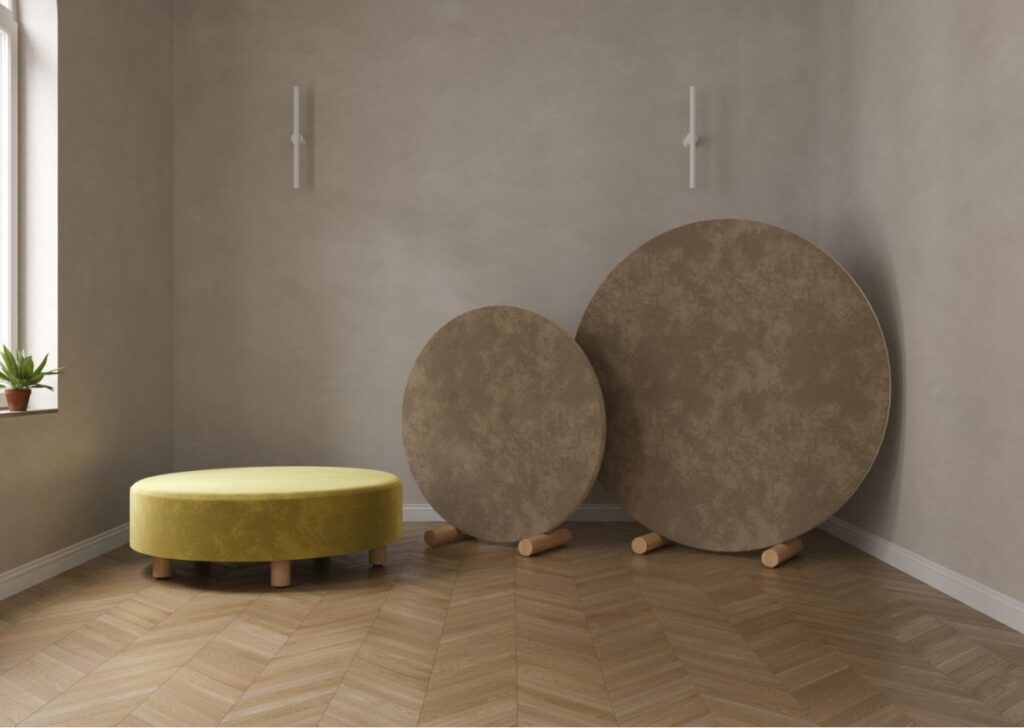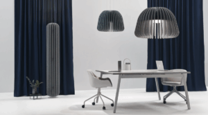 Akustyczna lampa biurowa Bell uosabia współczesną reinterpretację tradycyjnego klosza, ale powiększonego do ogromnych rozmiarów.