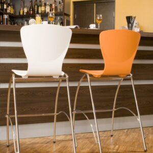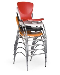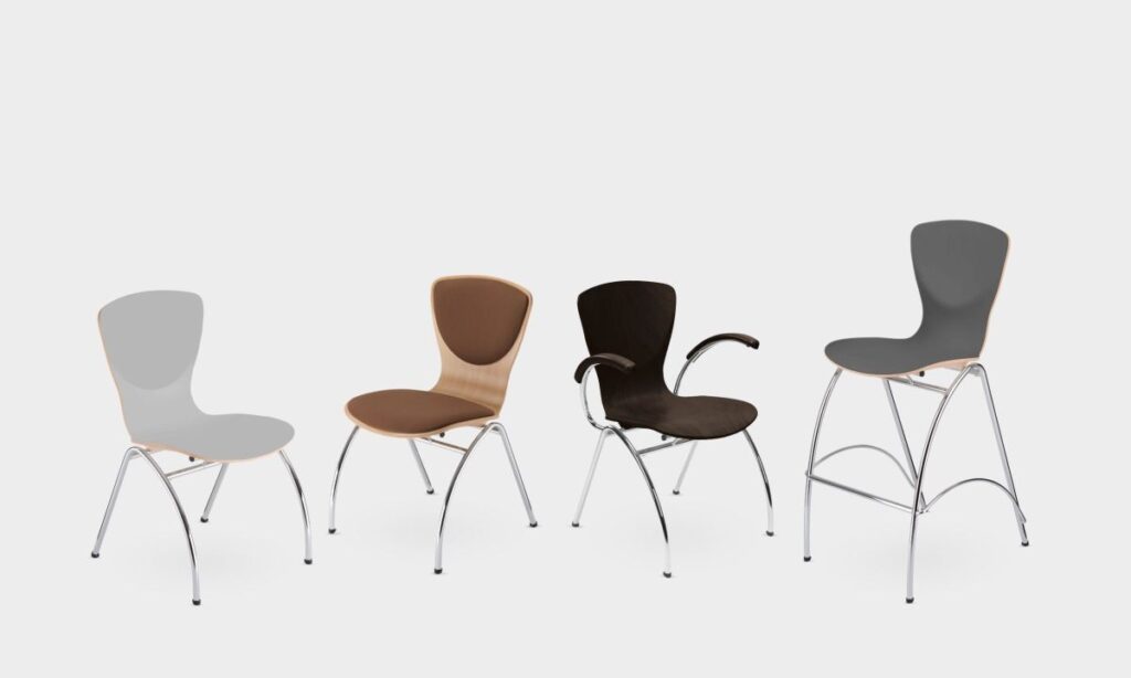 Stelaż metalowy w kilku kolorach do wyboru. Siedzisko i oparcie wykonane z profilowanej bukowej lub laminowanej sklejki w wielu wybarwieniach lub kolorach do wyboru.