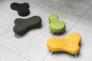 Nieregularne amorficzne formy sofy BOULI powstały, by zaskoczyć użytkowników nową, niekonwencjonalną formą oczekiwania — wręcz nową przestrzenią.