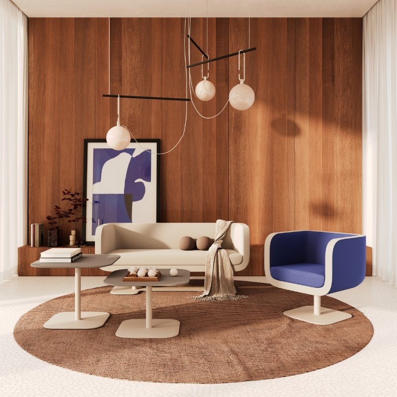 Bound doskonale komponuje się z różnorodnymi aranżacjami — od wnętrz biurowych po strefy relaksu i hotelowe lobby.