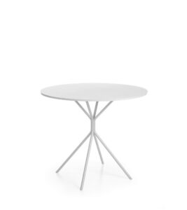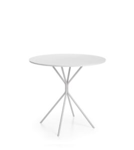 Delikatny stelaż z metalowego pręta o średnicy 18 mm w połączeniu z szerokim wyborem blatów – szkło, ceramika, drewno czy blacha – daje niemal nieograniczone możliwości aranżacyjne.