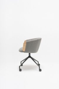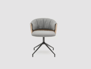 Tapicerowane siedzisko, oparcie ze sklejki, podstawa obrotowa i marszczona poduszka – COLLAR stanowi połączenie funkcjonalności i stylu.