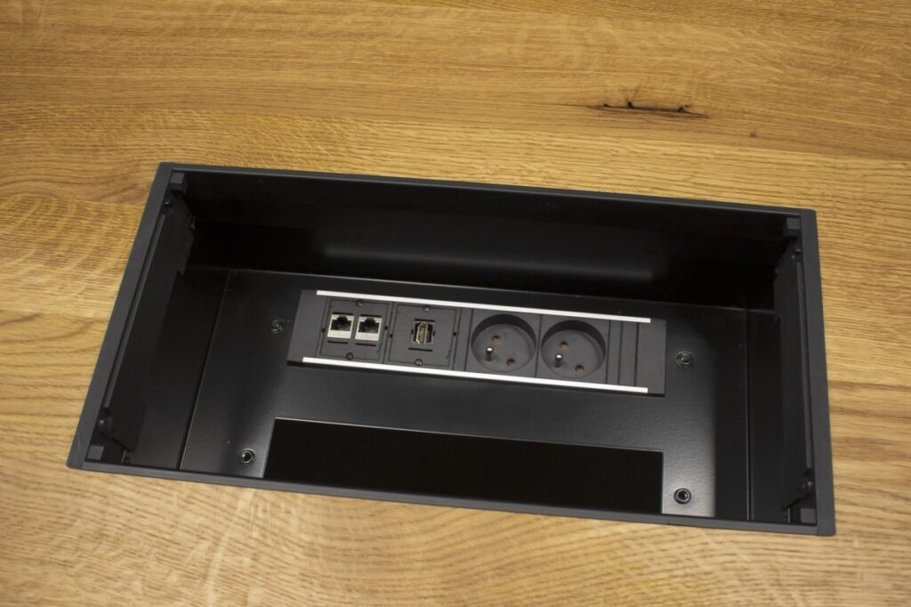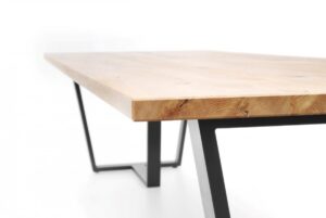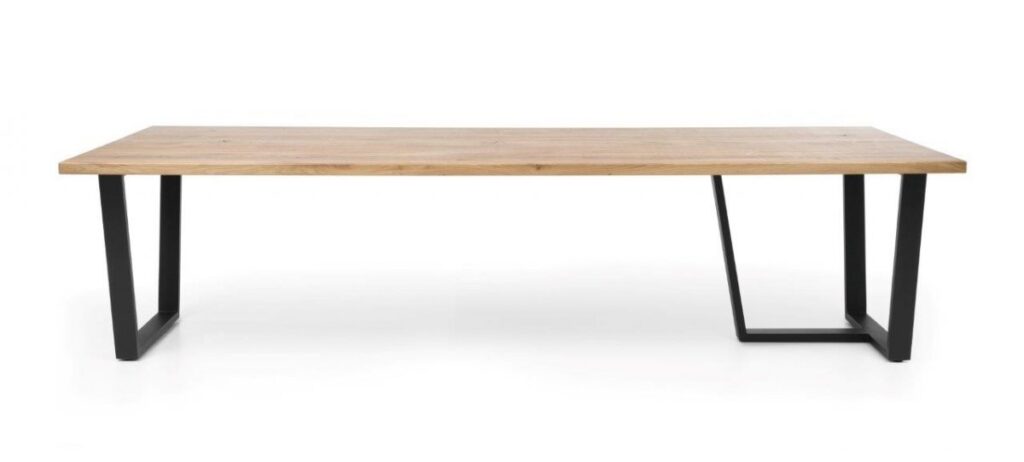 Tables Conference to solidne stoły w loftowym stylu do sal konferencyjnych – posiadają blat z litego drewna dębowego oraz oryginalną, asymetryczną stalową konstrukcję.