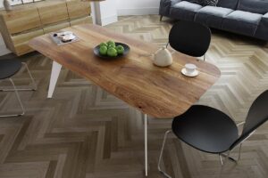 Dlatego wsparto je na unikatowej, stalowej konstrukcji nóg. Meble drewniane ENKE to oryginalny rysunek naturalnego pełnego blatu drewnianego, czyste linie krawędzi oraz funkcjonalność. Dzięki temu, to doskonałe dopełnienie przestrzeni biurowych.