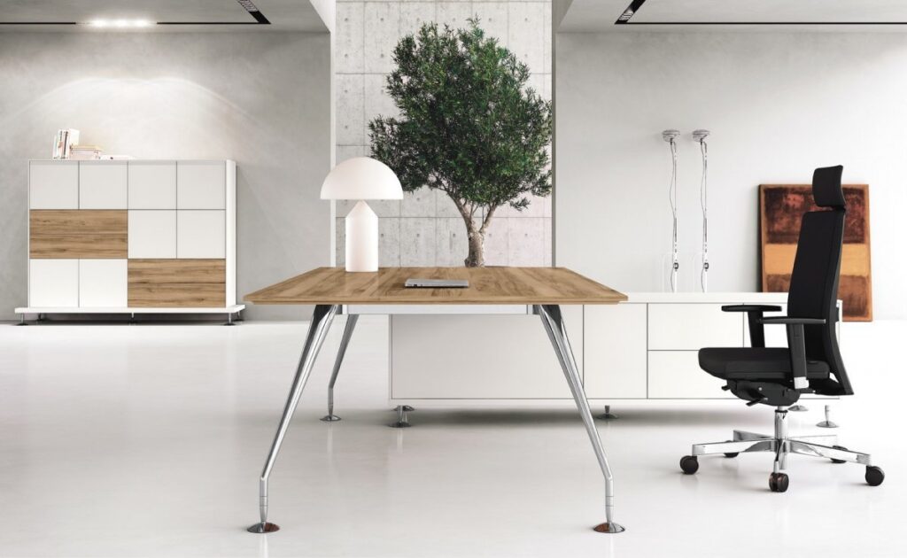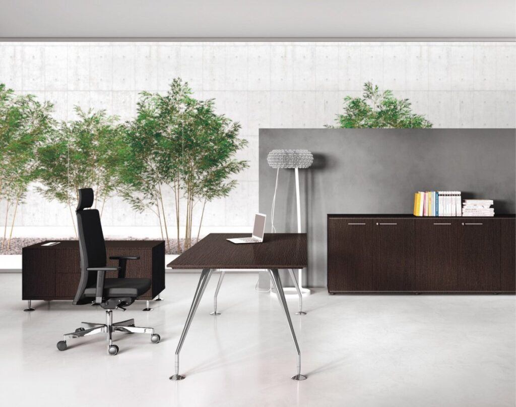 Meble gabinetowe Enosi Evo wyrastają z nowoczesnego modelu zarządzania. To elegancja pozbawiona statyczności – wydajna, wyrazista i zawsze dynamiczna.