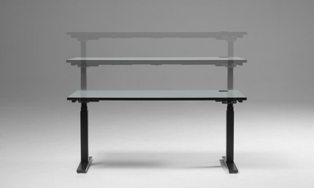 Po złożeniu biurko umożliwia komfortową pracę w pozycji siedzącej i stojącej. Zastosowana rama teleskopowa pozwala dobrać odpowiednią szerokość blatu i dopasować wymiary mebla do potrzeb użytkownika. Funkcja antykolizji wykrywa przeszkody podczas ruchu blatu, zatrzymuje mechanizm i cofa blat do bezpiecznej pozycji.
