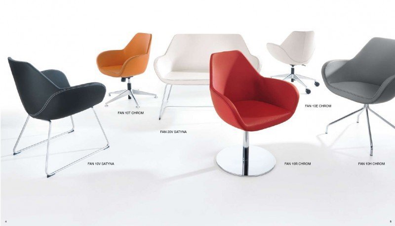 Każdy fotel może otrzymać unikalny wygląd dzięki doborowi rodzaju i koloru materiału obiciowego. Model FAN jest nowoczesnym fotelem, wobec którego nikt nie pozostanie obojętny. Jest to siedzisko uniwersalne do szerokiego zastosowania w segmencie właściwie z pogranicza biura i przestrzeni domowej – zarówno do open space’ów, sal konferencyjnych, poczekalni i recepcji w instytucjach publicznych typu urzędy, banki, zakłady ubezpieczeń, jak i do mieszkań i prywatnych małych biur (Home Office). Kubełek wykonany jest w technologii pianek wylewanych, co pozwala wykorzystać wieloletnie doświadczenie i wiedzę producenta. To gwarantuje najwyższą jakość proponowanych modeli.