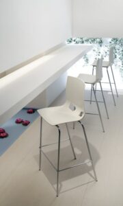 Ale oryginalność krzesła wyraża się przede wszystkim w jego kolorach: jasnych, intensywnych. Oprócz neutralnych kolorów takich jak biały, Fondo jest również dostępny w intensywnej czerwieni, głębokim fiolecie, fluorescencyjnym pomarańczu i limonkowej zieleni.
