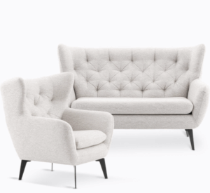 W skład kolekcji QUITO wchodzą elegancka sofa oraz dopasowany stylistycznie fotel — duet, który wprowadza do wnętrza harmonię, lekkość i odrobinę luksusu.