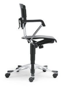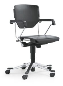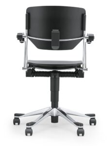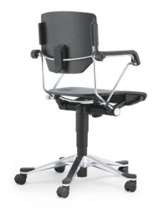 Krzesło obrotowe GIROFLEX 32 to model bez tapicerki, jednak mimo to utrzymuje on zaskakujący komfort siedzenia. Dzięki prostej, gładkiej i funkcjonalnej konstrukcji – krzesło idealnie pasuje do środowisk wymagających szczególnej higieny i czystości.