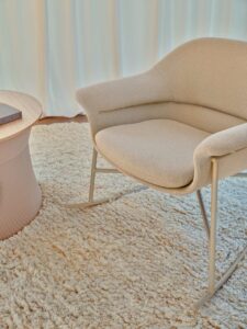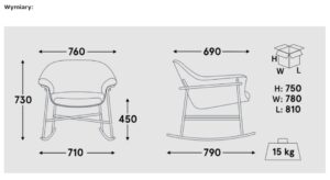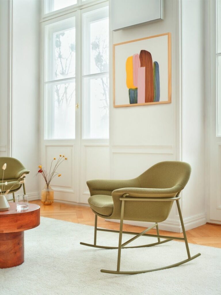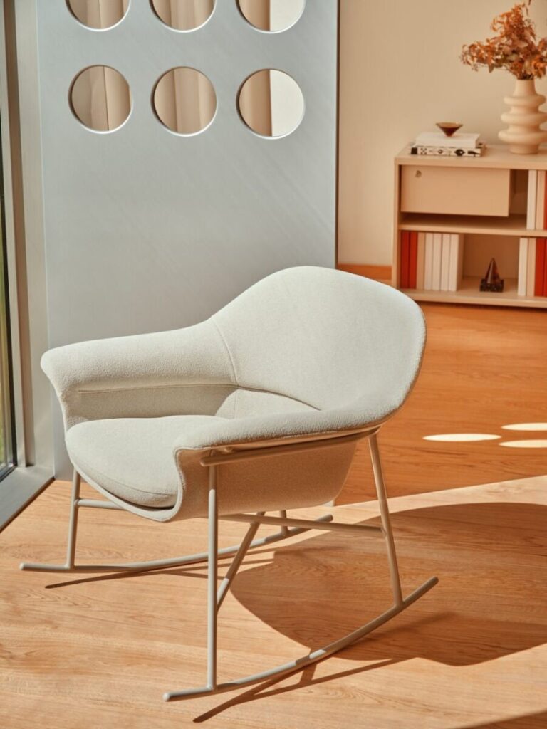 Nietypowa bujana podstawa z metalowych rurek delikatnie obejmuje jego oparcie. Połączenie szerokiego kubełka i bujanych płóz sprawia, że fotel jest jednocześnie nowoczesny i nostalgiczny, a jego ponadczasowy, bezkompromisowy design zapewnia idealną równowagę wyglądu i wygody użytkowania. Otulając użytkownika, Ismo zaprasza do tego, aby się rozsiąść i odpocząć. Jest więc fotelem idealnym do stref lounge, salonów, bibliotek i innych miejsc nieformalnych spotkań oraz chwil wypoczynku. Dzięki niewielkim wymiarom równie dobrze sprawdzi się także we wnętrzach mieszkalnych i bardziej kameralnych.