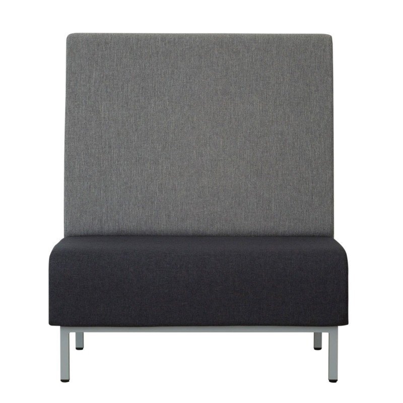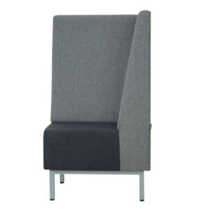 Składający się z elementów prostych i narożnikowych, system mebli z wysokimi oparciami — pozwala aranżować wydzieloną strefę do rozmów lub relaksu.