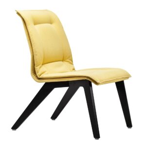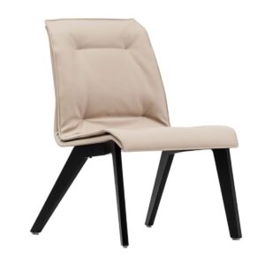 W domowym gabinecie oferuje gościom odpoczynek. To fotel dumnie wznoszący się na dwóch parach wyrzeźbionych nóg, zgrabnie zwężających się ku dołowi. Oferowany jest w wersji z tapicerowanym siedziskiem z charakterystyczną poduszką zapewniającą komfort dłuższego siedzenia. Nogi fotela wykonane są ze sklejki bukowej.