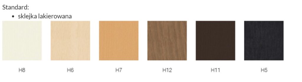 Dostępne wersje – kubełek ze sklejki z tapicerowanymi nakładkami na siedzisko i oparcie: