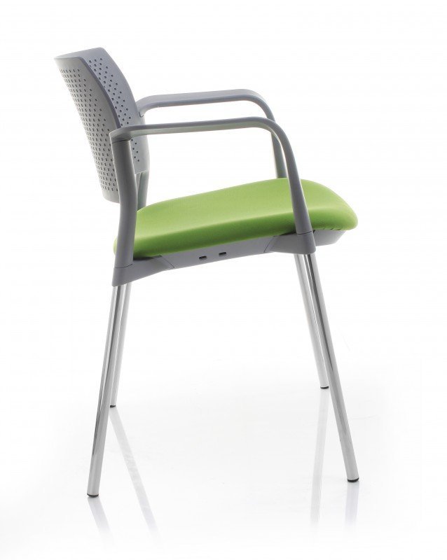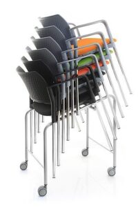 Możliwość zamontowania pulpitu, łączenia w rzędy, sztaplowania krzeseł i transportu ich na wózku to cechy zapewniające niezwykłą funkcjonalność. Dzięki temu KYOS doskonale sprawdza się zarówno w nowoczesnych salach konferencyjnych i szkoleniowych, jak i w małych biurach oraz recepcjach.