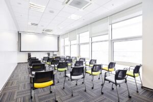Możliwość zamontowania pulpitu, łączenia w rzędy, sztaplowania krzeseł i transportu ich na wózku to cechy zapewniające niezwykłą funkcjonalność. Dzięki temu KYOS doskonale sprawdza się zarówno w nowoczesnych salach konferencyjnych i szkoleniowych, jak i w małych biurach oraz recepcjach.