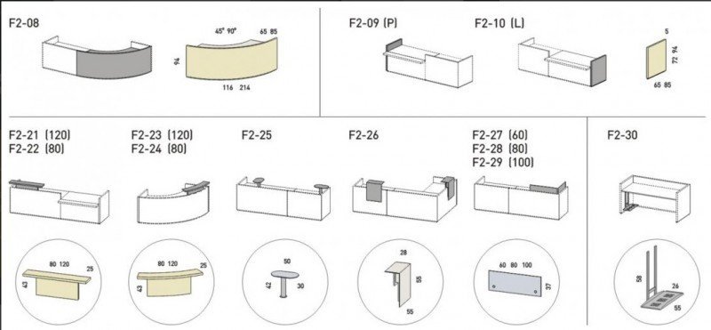 Szeroka gama wykończeń (melamina, Melamina HPL, okleina naturalna, HPL extra, MDF lakier struktura/połysk) umożliwia dopasowanie do stylu wnętrza.