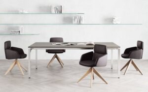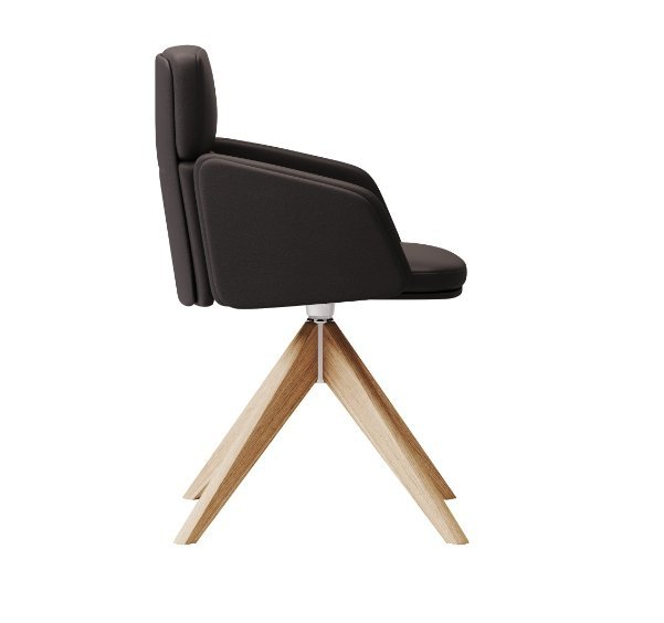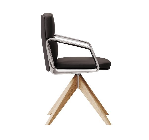 Baza drewniana 5-ramienna. Podłokietniki: aluminium polerowane lub pełne tapicerowane. Krzesło obrotowe 360 stopni.