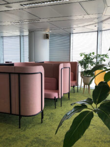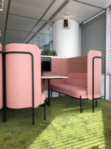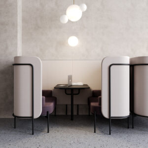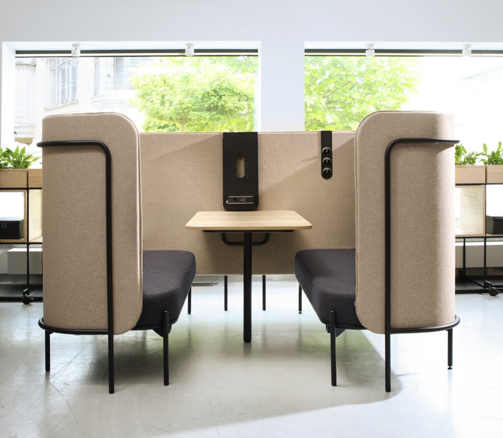 Chat Pod tworzy wygodną, akustycznie wyciszoną przestrzeń do rozmów i pracy zespołowej w open space.