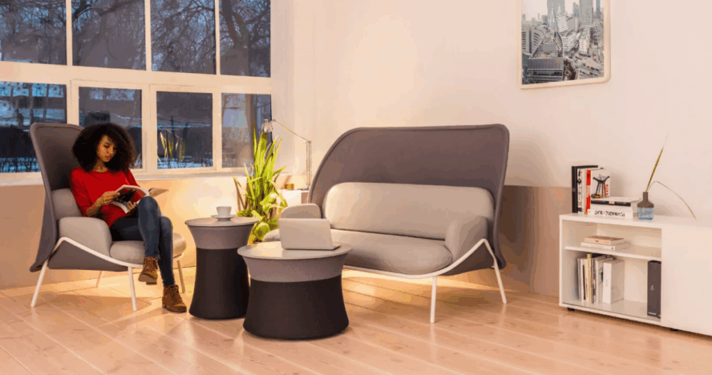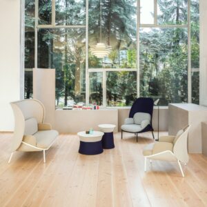 Ich nietypowy, kreatywny kształt nadaje wnętrzom, takim jak poczekalnie czy strefy chill-out, inspirujący i współczesny charakter. Boki stolika wykończone tkaniną subtelnie nawiązują do tapicerki pozostałych elementów kolekcji, zapewniając spójność wizualną. Możliwość wyboru rozmiaru i kolorystyki pozwala dostosować stoliki do różnorodnych aranżacji oraz funkcji w przestrzeni biurowej.