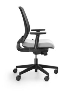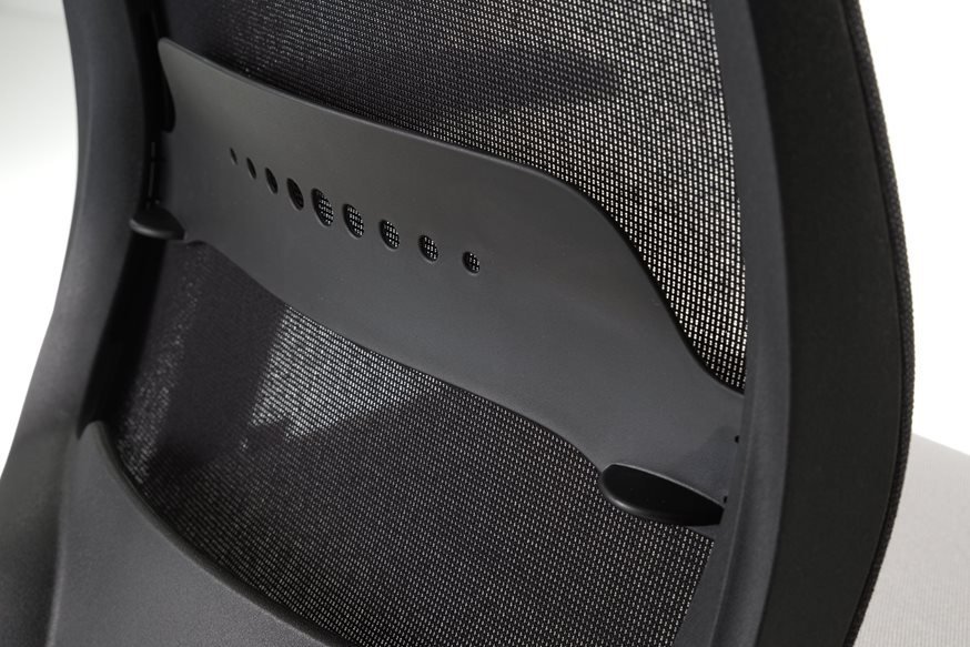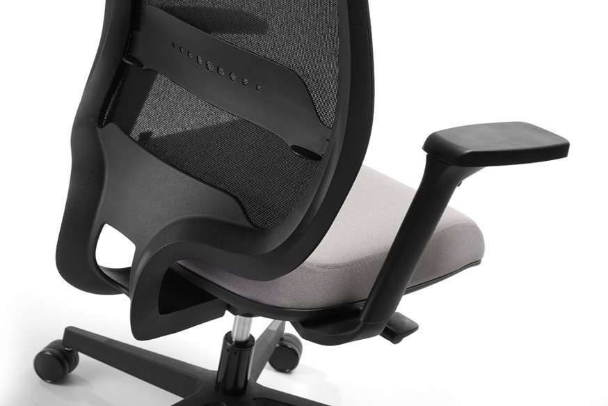 MOMO posiada wszystkie funkcje jakich oczekujemy od wygodnego krzesła do pracy: obrotowe siedzisko, regulację wysokości i głębokości siedziska, regulację podłokietników oraz regulację wysokości i głębokości podparcia lędźwiowego. Oparcie, wykonane z elastycznej i przewiewnej membrany, przyczynia się do komfortu i podniesienia ergonomii. MOMO przykuwa wzrok charakterystycznym kształtem oparcia, które występuje w kolorze czarnym lub białym, oraz z transparentną siatką, która doda lekkości i nowoczesności każdemu wnętrzu. Fotel MOMO łączy funkcjonalność, design i jakość, a to wszystko w przystępnej cenie.