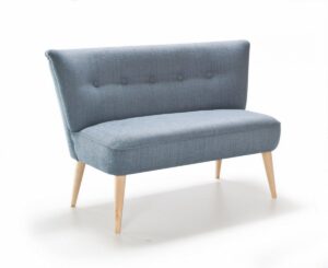 SOFA 2 LUCIO — sofa w całości tapicerowana (w tkaninach z I grupy cenowej). Nóżki drewniane. Oparcie pikowane guzikami w kolorze tapicerki.