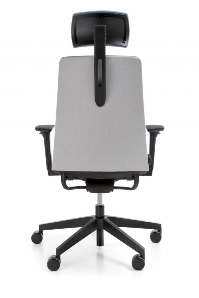 Nowe funkcjonalności dodane do kolekcji to opcja multiregulowanego zagłówka, co dodatkowo poprawia komfort użytkowania oraz regulowane na głębokość podparcie odcinka lędźwiowego kręgosłupa (schukra), w pełni zintegrowane z oparciem. Regulacja podparcia jest możliwa za pomocą estetycznego pokrętła umiejscowionego z boku oparcia.