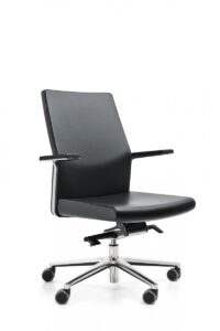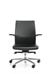Krzesła z kolekcji MY TURN mają precyzyjne wykończenia skórzane, połączone z elementami aluminiowymi, nadające kolekcji cech produktu premium. Wersja obrotowa znakomicie uzupełni wystrój gabinetu prezesa, a wersja konferencyjna będzie idealnym wyposażeniem sal konferencyjnych.