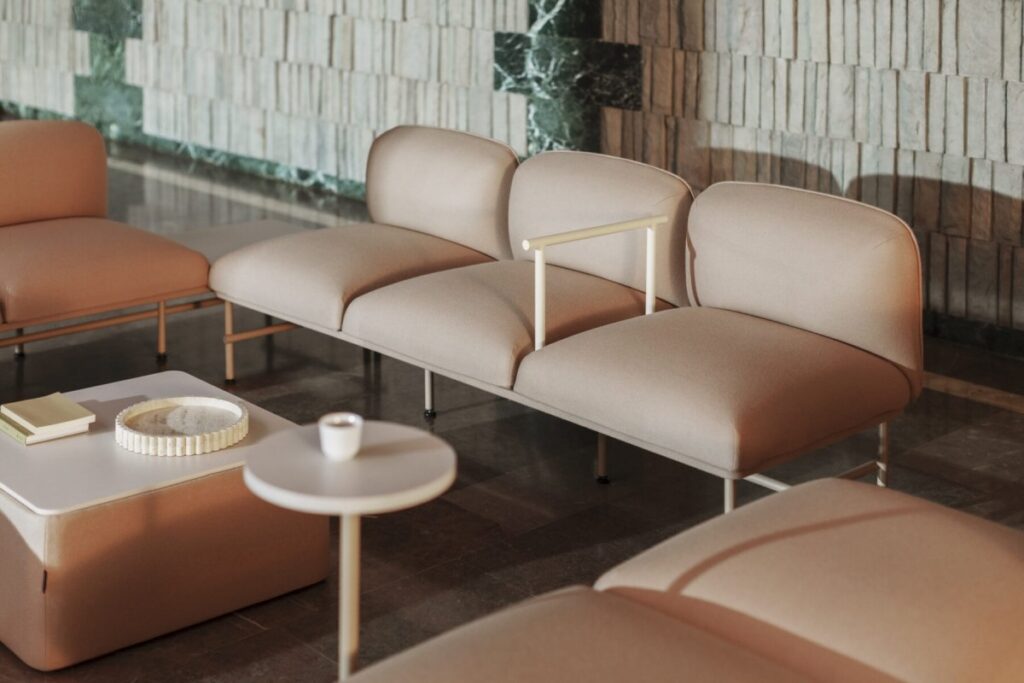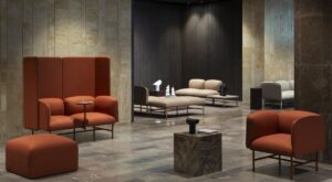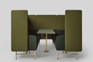 Kolekcja została także zaprojektowana z myślą o osobach starszych – meble ułatwiają wygodne wstawanie, a dodatkowy metalowy podłokietnik, montowany przy siedziskach, zapewnia stabilne podparcie podczas podnoszenia się. NEBULA nie tylko stawia na wygodę siedzenia, ale także dba o poprawę akustyki wnętrz dzięki systemowi parawanów montowanych na sofach i fotelach. Solidna konstrukcja, wysokiej jakości materiały oraz ekologiczne podejście – eliminacja zszywek w montażu pokrowców i ułatwiony recykling – czynią Nebulę trwałym i przyjaznym dla środowiska wyborem.