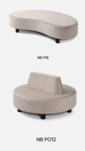 Charakteryzuje ją organiczny kształt i miękka forma o zaokrąglonych krawędziach, która nadaje wnętrzom lekkości i elegancji. Kolekcję tworzą bardzo wygodne sofy i pufy oraz ścianki akustyczne w kształcie koła. Jej zaletą jest możliwość doboru rodzaju i koloru tapicerki oraz personalizacja bazy (nogi metalowe malowane proszkowo lub drewniane dębowe). Dodatkowo do podstawy puf można zamontować dedykowane stoliki. Dzięki zastosowanym materiałom NUBI spełnia wymogi intensywnie użytkowanych wnętrz publicznych i może uatrakcyjnić lobby hotelowe oraz otwarte przestrzenie biur, banków oraz centrów handlowych.