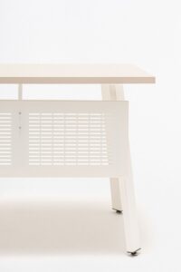 Prosta konstrukcja daje wiele możliwości aranżacji przestrzeni roboczej, takich jak łączenie kilku stanowisk pracy, co jest idealnym rozwiązaniem dla biur współdzielonych i typu open space. Miejsca pracy można oddzielić panelem akustycznym dostępnym w różnych kolorach i tkaninach, który stworzy poczucie prywatności w miejscu pracy. Przestrzeń roboczą można rozszerzyć za pomocą kontenerów i szafek biurkowych, które pomogą utrzymać porządek.