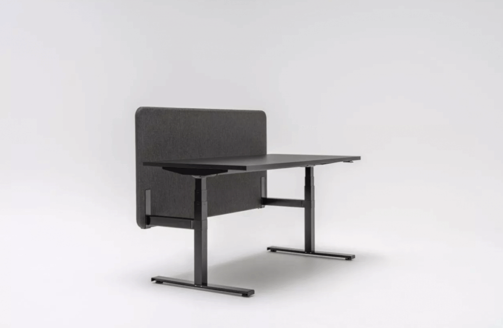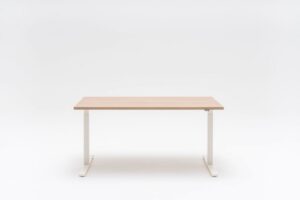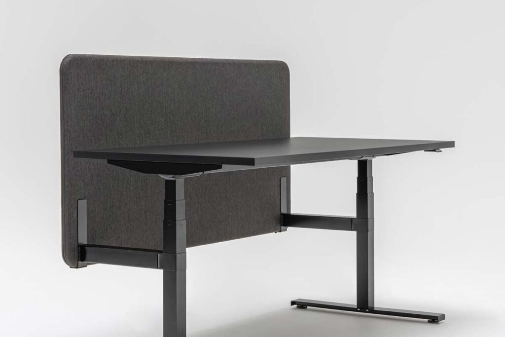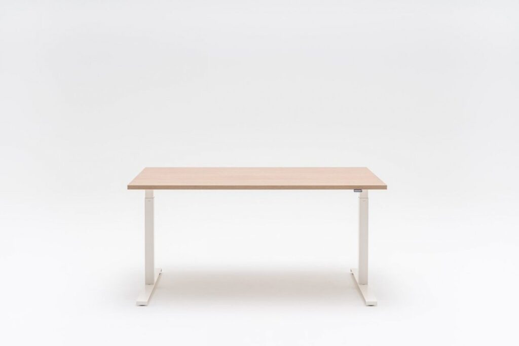 Stelaż z malowanego proszkowo metalu oferuje zakres regulacji 650–1300 mm lub 700–1200 mm (w zależności od konfiguracji) i jest napędzany dwoma zsynchronizowanymi silnikami. Blat z płyty melaminowanej (MFC) o grubości 28 mm, wykończony obrzeżem ABS 2 mm, zapewnia trwałość i estetykę. Do wyboru są różne szerokości oraz wykończenia, w tym powłoka nano-tech Fenix.