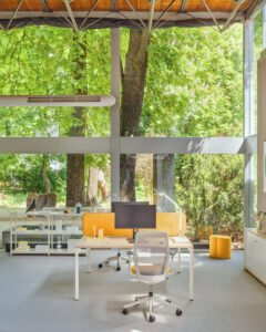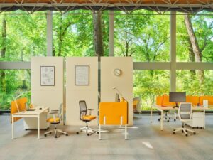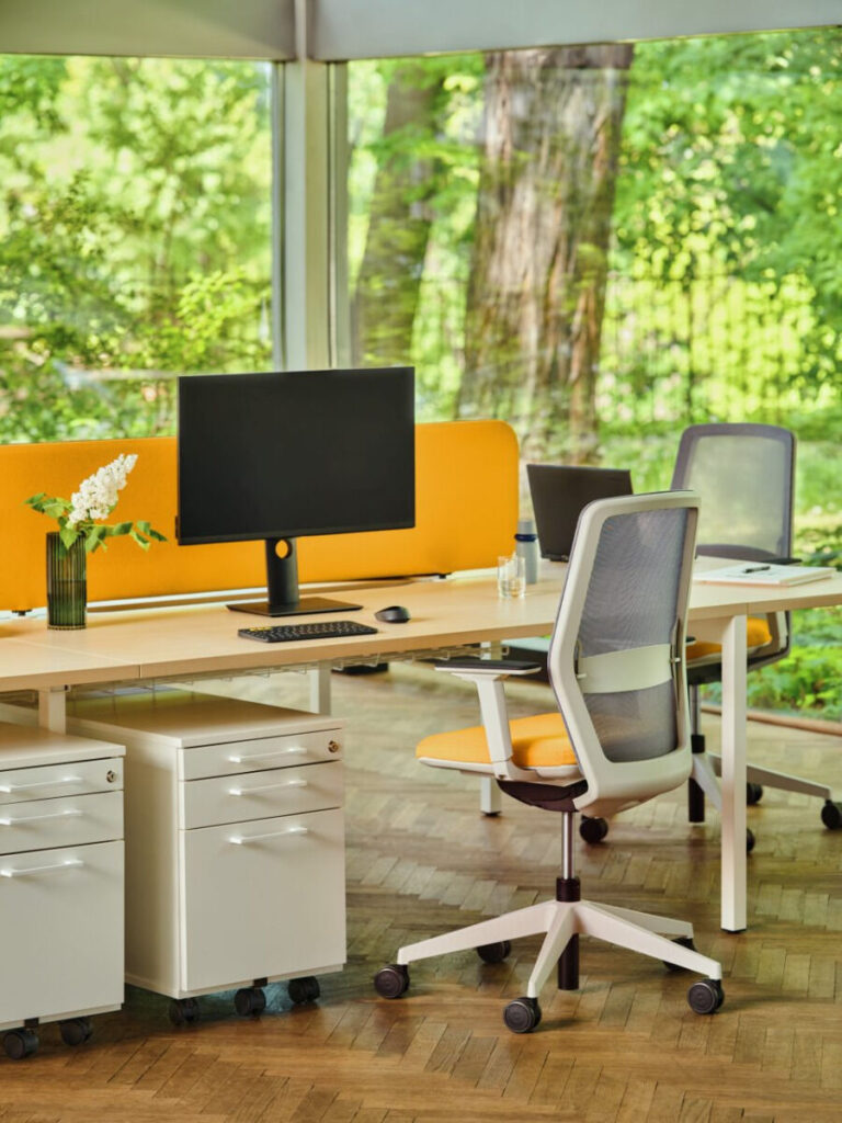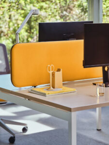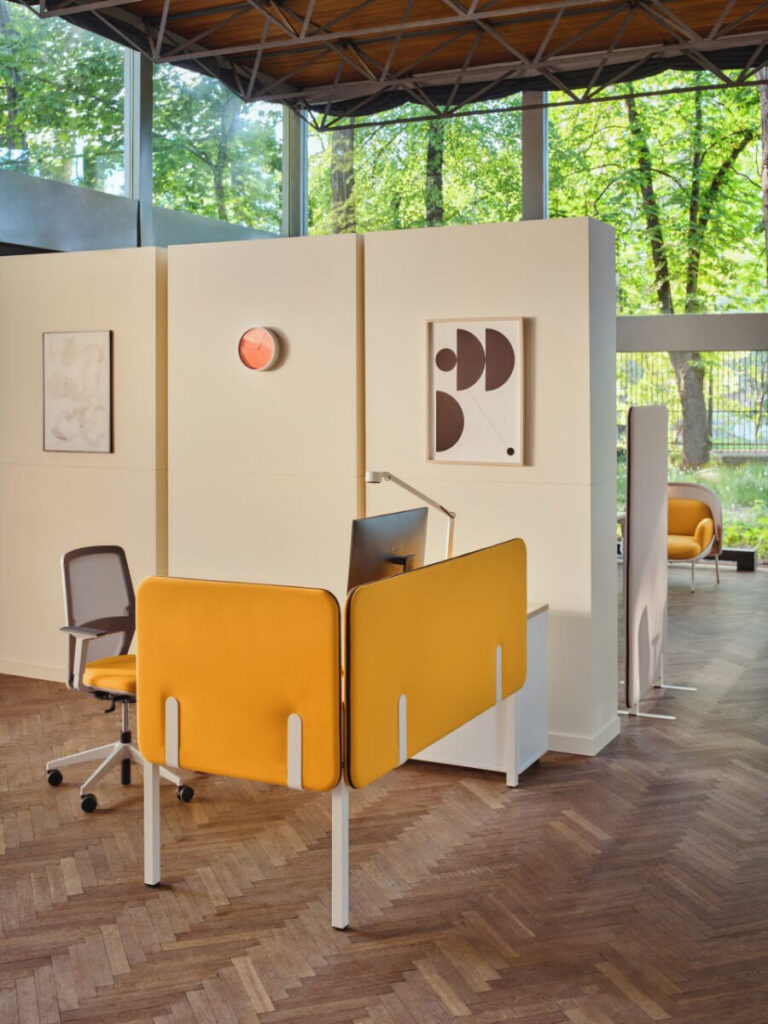 Dobrze zorganizowane miejsce pracy ułatwia szybką wymianę informacji i ułatwia pracę w zespole. System zapewnia tworzenie ciekawych kompozycji kolorystycznych z płyty, tkaniny i metalu.