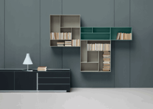 Szczególnym i wyrazistym elementem kolekcji Ostin są wiszące regały – kwadratowy i prostokątny.