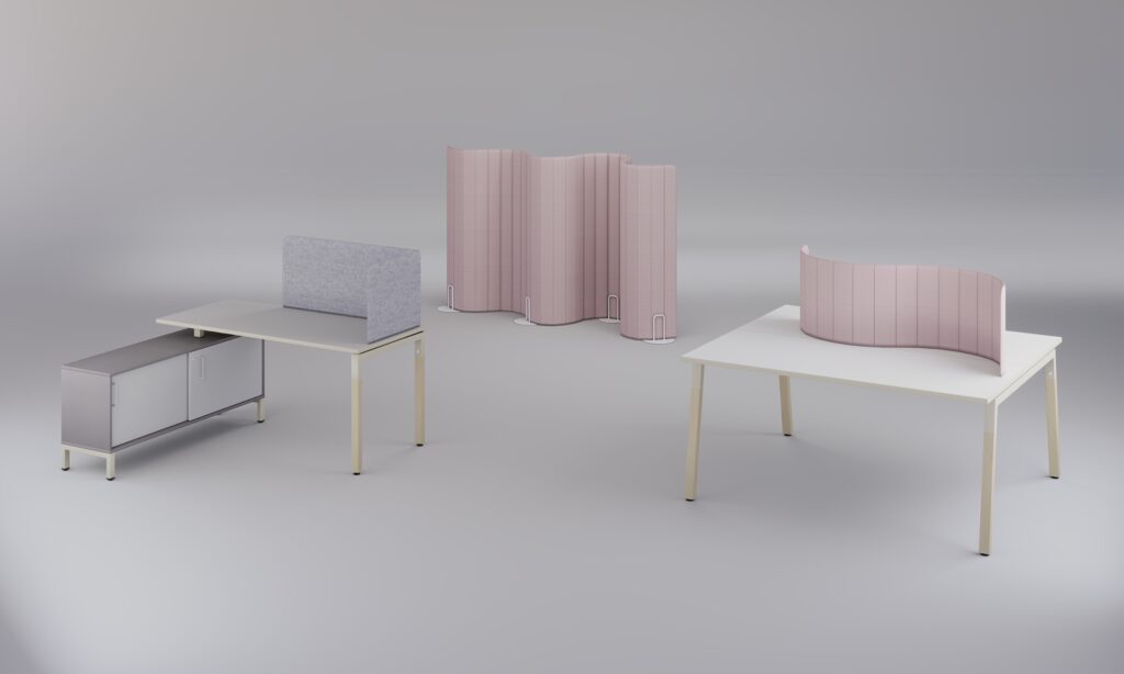 Panele dostępne są w różnych wysokościach, szerokościach i wykończeniach, dzięki czemu można je dopasować do każdego biurka i stylu wnętrza. Miękka, estetyczna tkanina nadaje im eleganckiego wyglądu, a zaokrąglone krawędzie poprawiają bezpieczeństwo użytkowania.