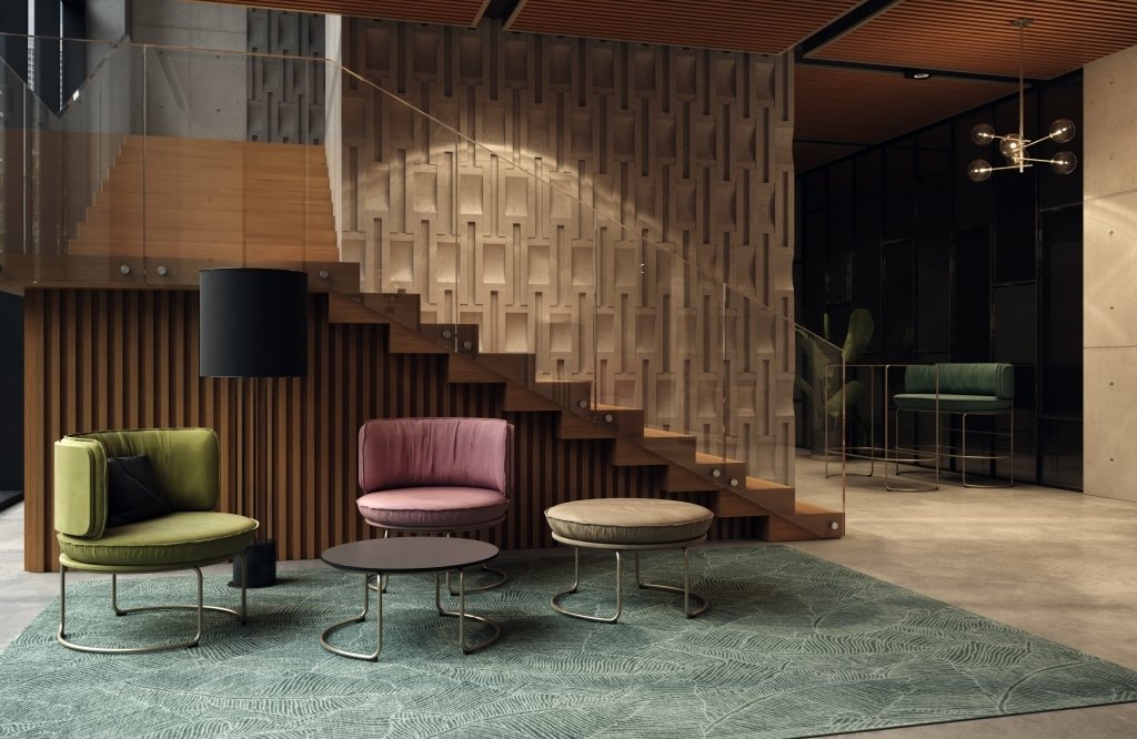 RING to komfortowy fotel lounge, który odnajdzie się zarówno w biurach w stylu minimalistycznym, jak i boho czy vintage.