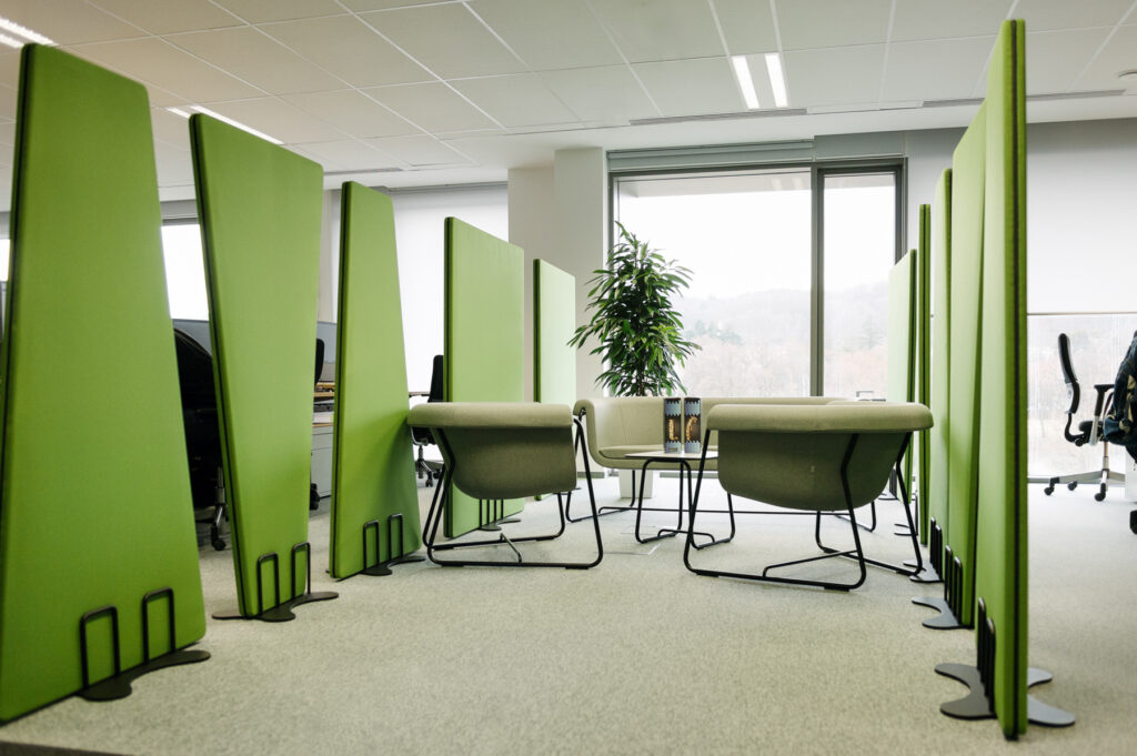 Selva to seria wolnostojących ekranów akustycznych, które w efektowny sposób dzielą przestrzeń i znacząco poprawiają komfort dźwiękowy w biurze, open-space czy przestrzeni coworkingowej. Modele SV SC1200, SV SC800 i SC800T różnią się rozmiarem, co pozwala dobrać optymalny ekran do wielkości pomieszczenia lub układu stanowisk — a jednocześnie oba oferują te same korzyści funkcjonalne i estetyczne.