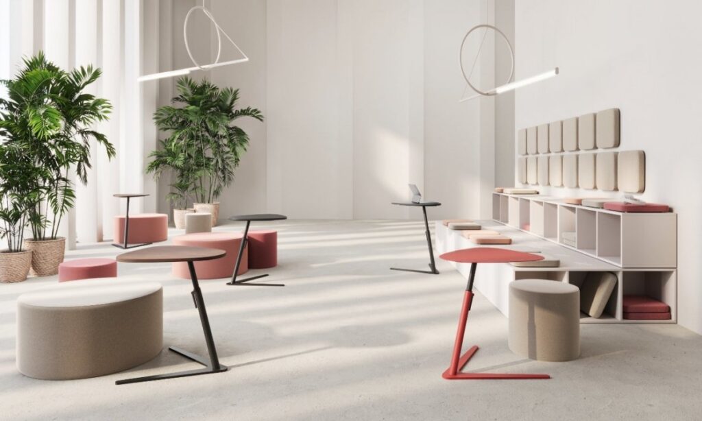 Jego kompaktowy rozmiar oraz ergonomiczna konstrukcja pozwalają ustawić go blisko użytkownika — podklasztrować pod siedzisko lub przesunąć w zasięg ręki. Warianty blatów obejmują metale, melaminę oraz Fenix, a metalowy blat z warstwą dźwiękochłonną znacząco redukuje hałas, co czyni Semu świetnym rozwiązaniem w przestrzeniach wymagających koncentracji. Semu łączy design z praktycznością — stanowi elegancki i elastyczny towarzysz codziennego użytkowania.