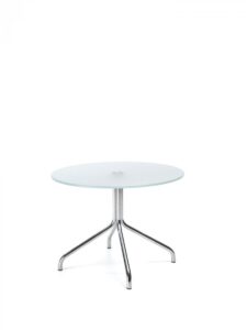 Dostępne w trzech wysokościach (SH20 – 720 mm, SH30 – 600 mm, SH40 – 450 mm) oraz w czterech wariantach wykończenia stelaża, pozwalają na swobodne dopasowanie do indywidualnych aranżacji. Okrągły blat z hartowanego szkła mlecznego o grubości 10 mm nadaje całości lekkości i klasy, a stalowa konstrukcja zapewnia stabilność i trwałość.