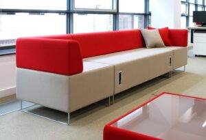 QUADRA to sofa, która dzięki zabudowie ze ścianek przestaje być tylko sofą, a staje się kameralnym miejscem spotkań. Model ten pozwala na organizowanie intymnych stref, tak ważnych w chaotycznych przestrzeniach publicznych.