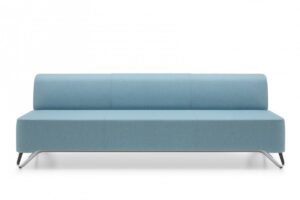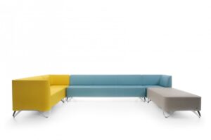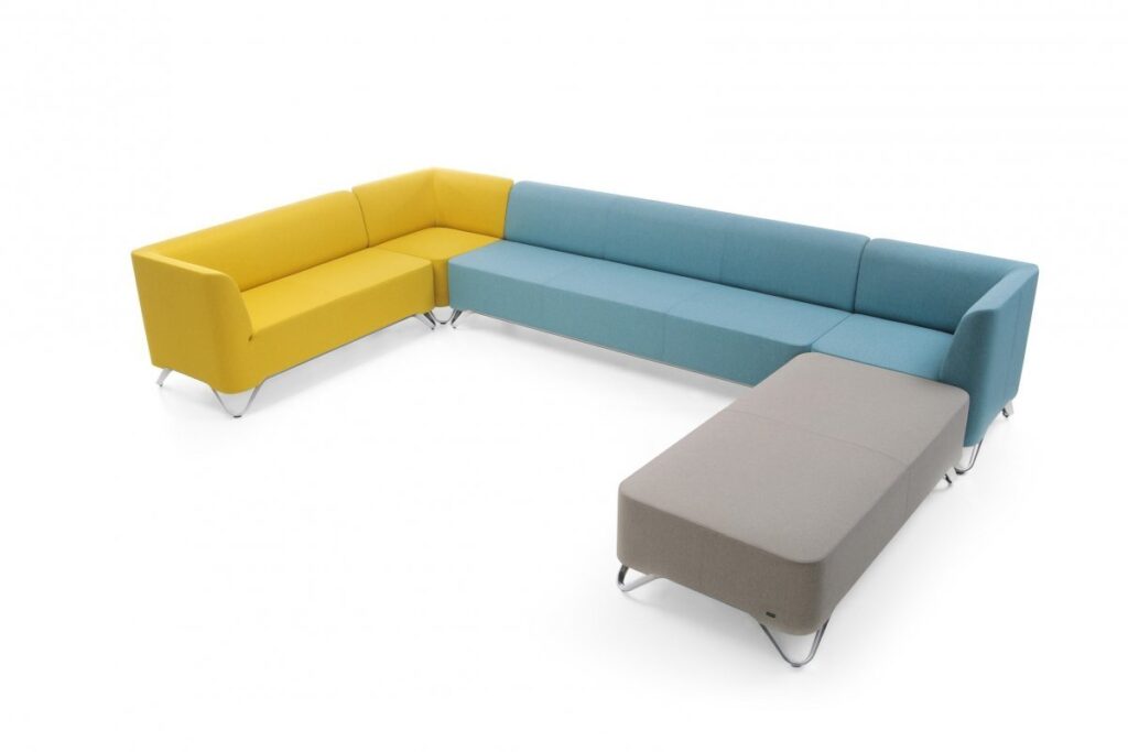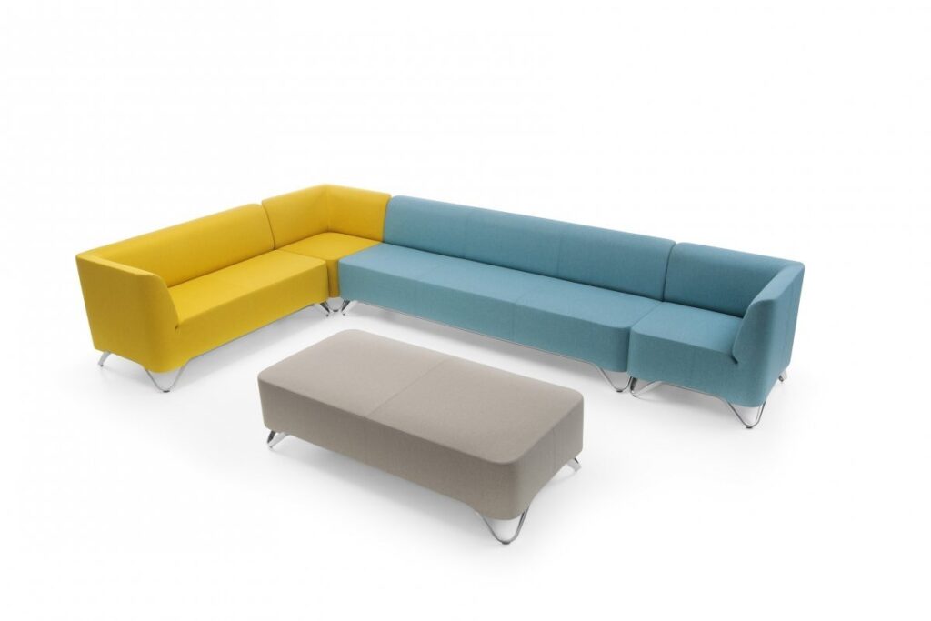 Dzięki elementowi narożnemu zestawy SOFTBOX można ustawiać w dowolnej konfiguracji, aby jak najlepiej współgrały z wnętrzem. Siedziska wydają się być podtrzymywane na delikatnych wstążkach – aluminiowe bądź drewniane nogi wyglądają lekko, a jednocześnie stabilnie.