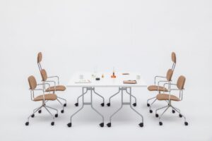 Stół konferencyjny EASY ze składanym blatem to idealne rozwiązanie dla małych przestrzeni biurowych. Dzięki szerokiej gamie kolorów i modułów, możliwe jest tworzenie konfiguracji i dopasowywanie ich do różnorodnych stylów gabinetów czy sal konferencyjnych. Możliwy jest także wariant z kółkami, dzięki czemu stół staje się mobilny. Mebel dedykowany jest użytkownikom ceniącym sobie funkcjonalność i ergonomię miejsca pracy i spotkań.