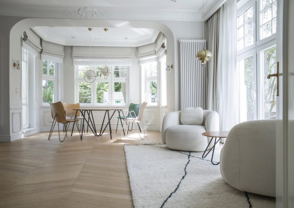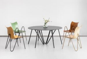 PEEL to okrągły stół o średnicy 150 cm. Wraz z 4 lub 6 krzesłami PEEL to propozycja dla spotkań w mniej formalnej atmosferze – tak pożądanej we współczesnych biurach i przestrzeniach publicznych. Blat stołu może być wykonany z wysokoodpornej płyty SwissCDF lub ze sklejki wykończonej okleiną naturalną. Podstawą stołu jest charakterystyczny, sinusoidalny stelaż stalowy, malowany proszkowo.