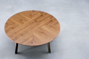 Prezentowana oferta dotyczy okrągłego stołu z blatem w okleinie naturalnej. Blat dzielony – 3 części.