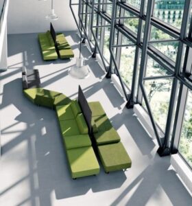 Kolekcja została zaprojektowana tak, żeby móc komponować dowolne zestawy, które w łatwy sposób mogą być przestawiane, co umożliwia łatwe rearanżowanie przestrzeni. W skład rodziny wchodzą pufy, fotele, stoliki, łączniki 30 i 60 stopni. Bardzo ważnym dopełnieniem są ścianki wykończone elastyczną tkaniną, pełniące rolę oddzielającą i wyznaczającą przestrzeń, w której można prowadzić kameralne rozmowy.
