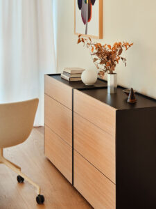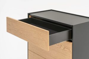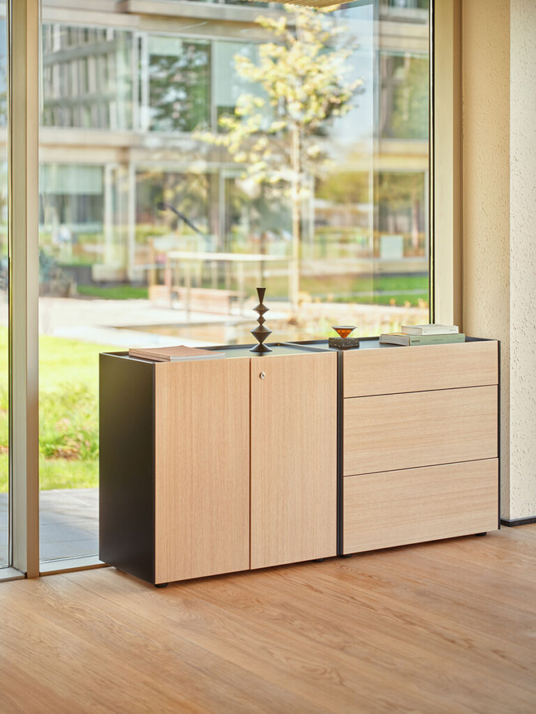 Jako samodzielny element, mogą być wykorzystane w każdym wnętrzu; alternatywnie można je łączyć z biurkami pracowniczymi i gabinetowymi jako boczne kontenerki, zapewniające dodatkową przestrzeń do przechowywania dokumentów i narzędzi codziennej pracy. Wyposażone w pojemne szuflady, przydatne przegródki i spójny system półek, szafki Viga ułatwią utrzymanie w biurze porządku, jednocześnie spełniając wymagania użytkownika dotyczące wysokiej jakości wykonania.